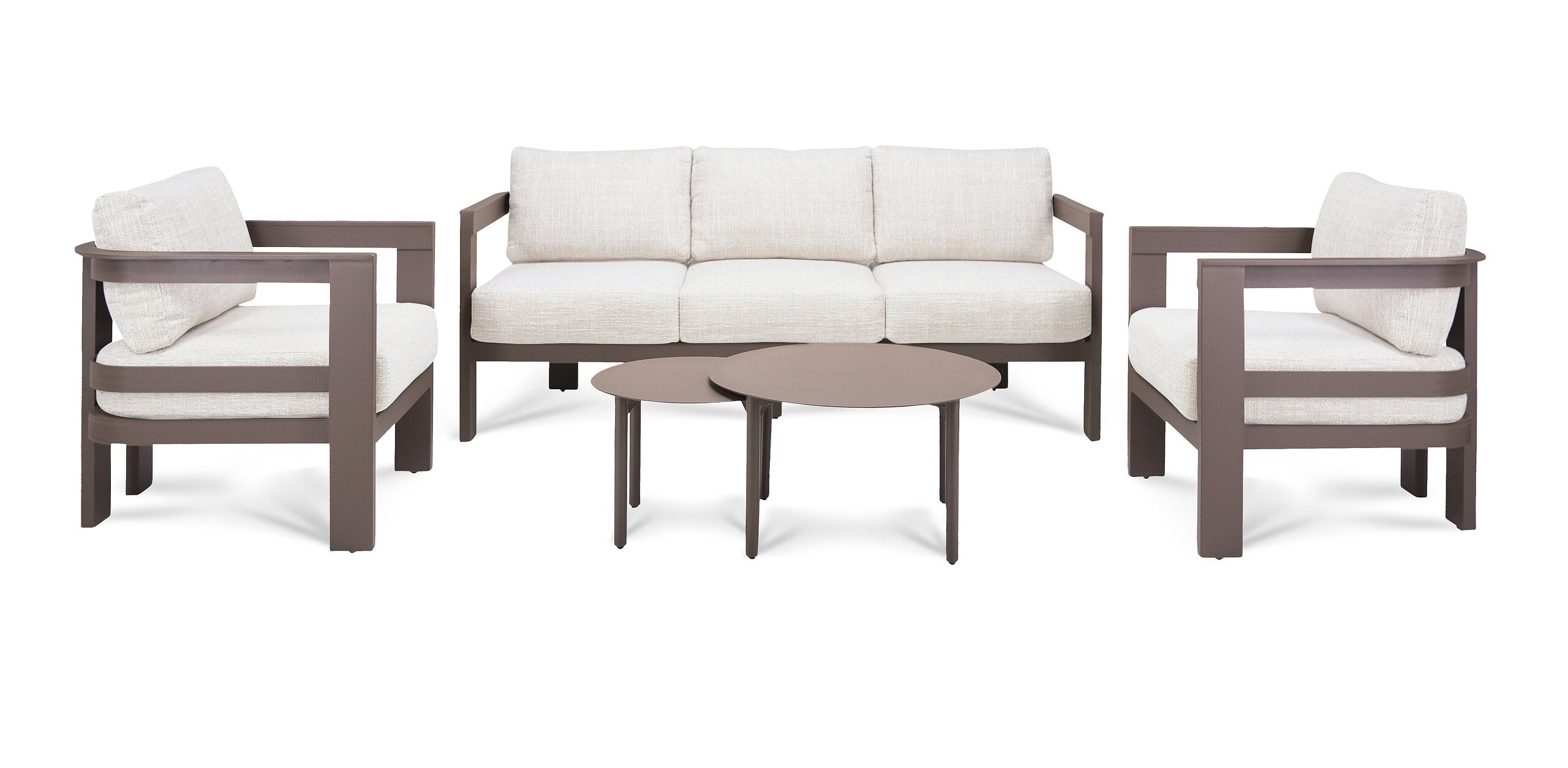 Loungeset Madrid is een stijlvolle en comfortabele outdoor set die verkrijgbaar is in twee elegante varianten: Crème en Brown. Beide uitvoeringen hebben dezelfde moderne vormgeving en luxe uitstraling, maar bieden elk hun eigen sfeer, zodat je altijd een variant kiest die perfect aansluit bij jouw buitenruimte.