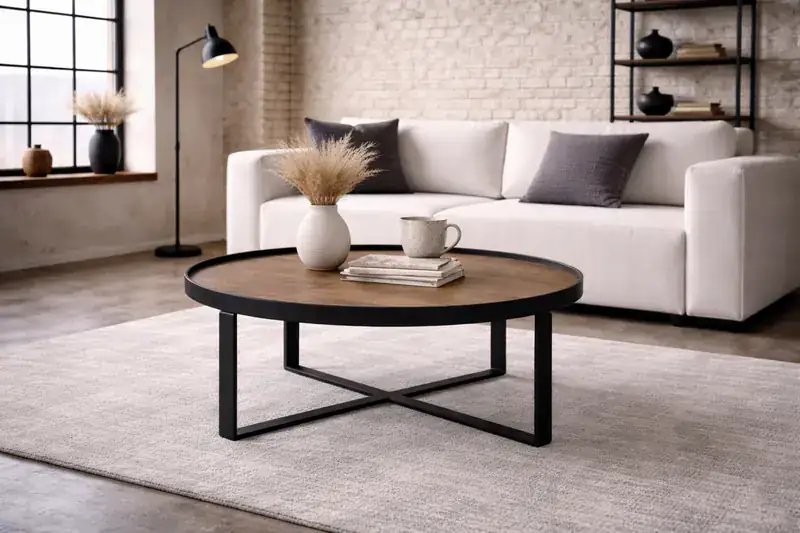 De Hub 2 Natural is een moderne industriële salontafel van de Hub-Serie van Icon Living, met een strak en stoer design.