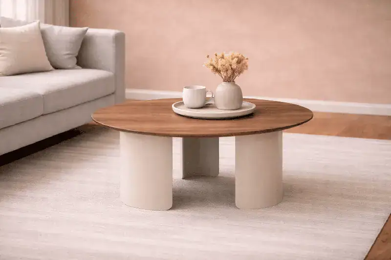 Salontafel Sarah 002 Organisch 70x56x38 Walnoot Poot Creme